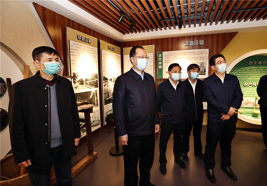 毛偉明來(lái)到省糧食和物資儲備局,了解我省糧食收儲發(fā)展情況。
