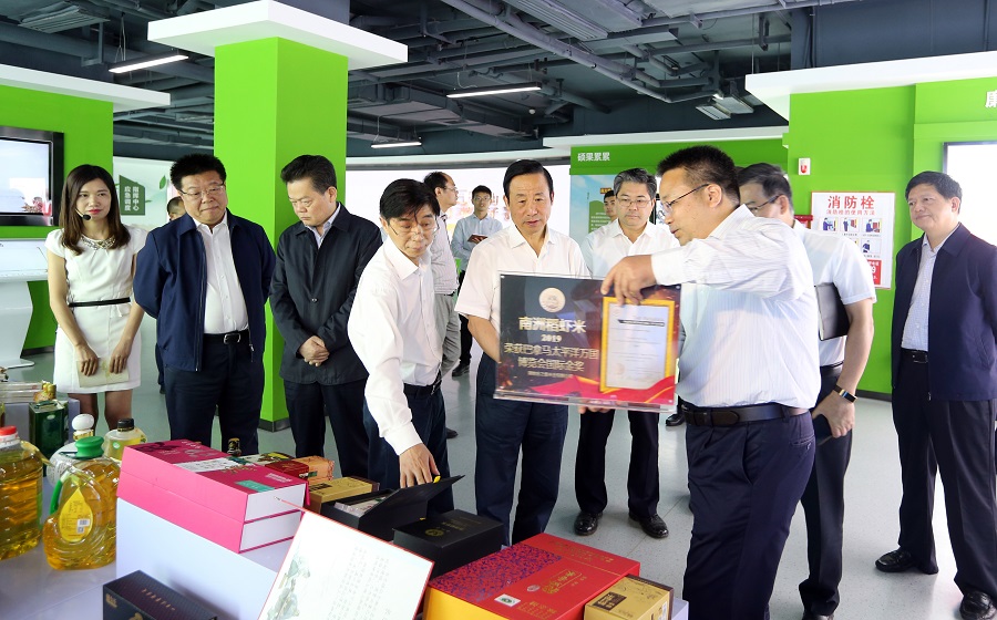5月6日下午,省委副書(shū)記、省長(cháng)許達哲赴省糧食和物資儲備局調研。圖為許達哲在展館中查看“湘”字號糧油產(chǎn)品。