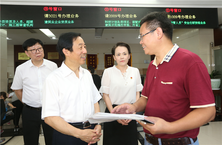 7月19日下午,省委副書(shū)記、省長(cháng)許達哲在省住房和城鄉建設廳調研。圖為許達哲走訪(fǎng)政務(wù)服務(wù)大廳。