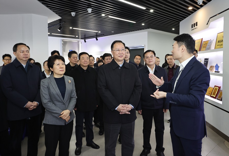 2月18日,省委副書(shū)記、省長(cháng)毛偉明赴長(cháng)株潭調研園區發(fā)展。毛偉明在長(cháng)沙經(jīng)開(kāi)區湖南天河國云科技有限公司調研。