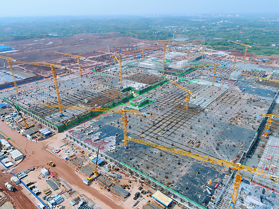 4月8日,瀏陽(yáng)經(jīng)開(kāi)區長(cháng)沙惠科第8.6代超高清新型顯示器件生產(chǎn)線(xiàn)項目主廠(chǎng)房建設工地一派繁忙。