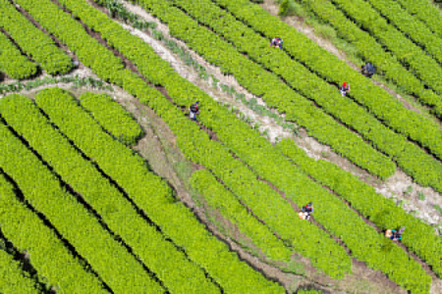 7月3日,常寧市塔山瑤族鄉,瑤胞在采摘夏茶。近年,該鄉種植高山有機茶4.5萬(wàn)畝,帶動(dòng)1200余名貧困勞動(dòng)力人均年增收5000元以上。