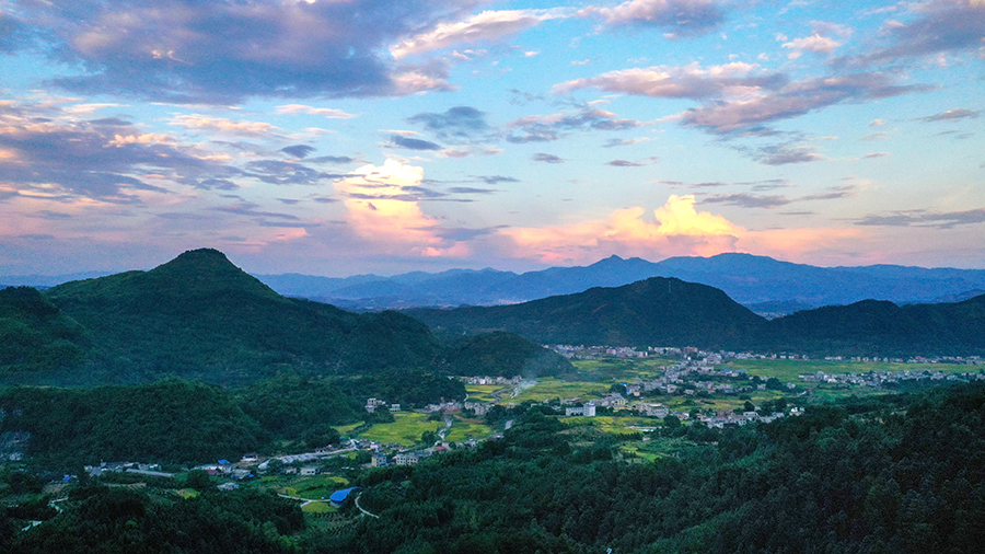 8月17日,晚霞映照下的新寧縣水廟鎮枧桿山村。