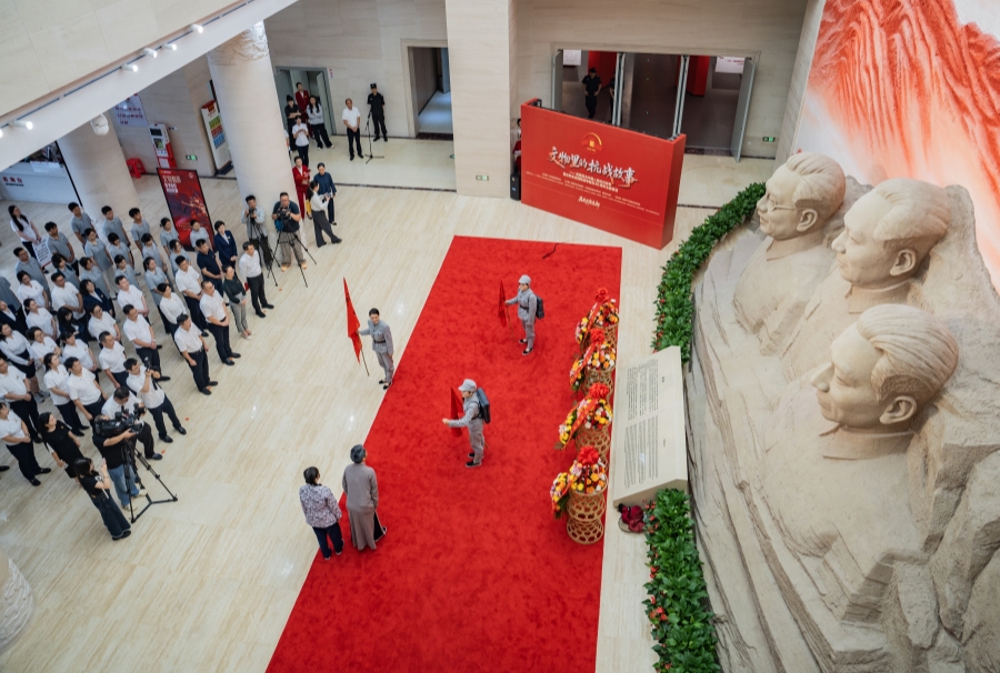 9月18日,演員在表演抗戰情景劇。當天,“文物里的抗戰故事”——湖南紀念中國人民抗日戰爭暨世界反法西斯戰爭勝利80周年主題展,在中國共產(chǎn)黨湖南歷史展覽館舉行。 湖南日報全媒體記者 李健 攝
