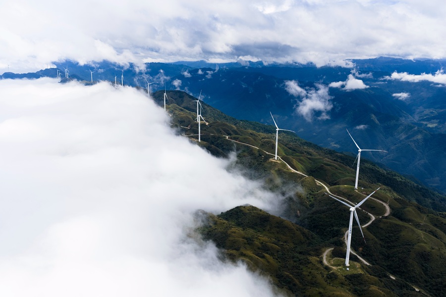 云端上的清潔能源 9月21日,通道侗族自治縣湘壽坪風(fēng)電場(chǎng),風(fēng)力發(fā)電機組與青山、云海相映成景。近年來(lái),該縣大力發(fā)展風(fēng)電產(chǎn)業(yè),推動(dòng)綠色能源建設,助力高質(zhì)量發(fā)展。石猛雷 攝