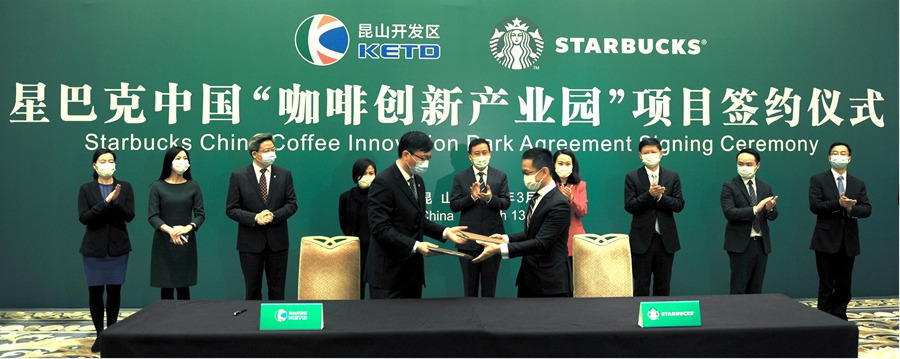 國際知名咨詢(xún)公司世邦魏理仕,多次向美國星巴克集團大力推薦昆山并陪同考察決策建議,成為投資方選址的決定性因素。2020年3月,星巴克咖啡創(chuàng )新產(chǎn)業(yè)園項目正式簽約落戶(hù),該項目投資額10.9億元,是美國500強企業(yè)去年在中國投資的首個(gè)產(chǎn)業(yè)項目,投產(chǎn)后年產(chǎn)值將達到11億元。