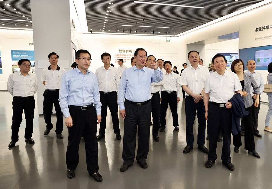 毛偉明一行在蘇州工業(yè)園區展示中心學(xué)習考察。劉尚文 攝