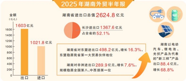 出口目的地多元化緩解了貿易摩擦帶來(lái)的壓力。上半年,湖南省對東盟進(jìn)出口498.2億元,增長(cháng)16.3%,東盟穩居我省第一大貿易伙伴地位。對中東國家進(jìn)出口181.2億元、增長(cháng)11%,中東已成為我省僅次于東盟、非洲、歐盟的重要貿易經(jīng)濟體。