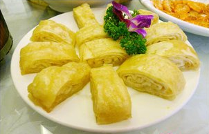 三、籠屜內輕刷一層熟豬油,放人腦髓卷生坯,放沸水蒸鍋上旺火蒸15分鐘至熟即成。
