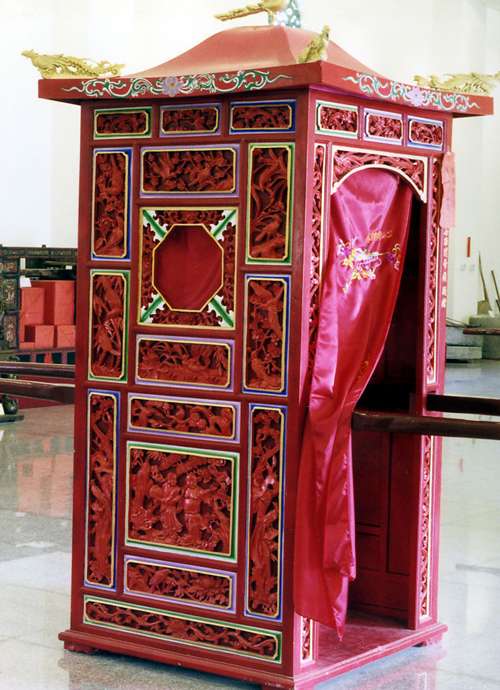 轎子是昔日主要代步工具,除富者及老弱病殘外,每個(gè)女人一生至少要坐一回。官吏坐的轎,等級森嚴,有4人拾8人抬的,還有16人抬的,人們分別稱(chēng)之為“四抬”“八抬”官人。民間有轎行,俗稱(chēng)轎碼頭,辦理出租業(yè)務(wù)。長(cháng)沙的轎有馬轎、蓬轎、鏡轎、涼轎之分。馬轎、篷轎多用竹制,較輕便,宜遠行。馬轎最簡(jiǎn)易,在兩杠之間綁一坐板、踏腳板或竹椅之類(lèi)即成。篷轎比馬轎稍復雜,有藍布篷蓋。鏡轎是木制的,裝有玻璃,遮有布簾,宜婦人乘坐。涼轎多為私人所有,一般為藤制,有帆布或皮質(zhì)篷蓋,屬軍官、士紳專(zhuān)用。故1926年興農會(huì )時(shí),打轎子成一時(shí)風(fēng)氣。但直到1949年,鄉下仍時(shí)見(jiàn)坐轎的。在市井,由于人力車(chē)等交通工具的發(fā)展,到抗戰時(shí)期,轎子就已極少見(jiàn)了。