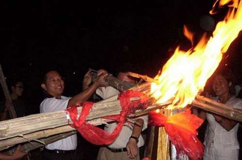 船民四季出沒(méi)風(fēng)波里,被稱(chēng)為“船拐子”,生活艱險,禁忌很多。平時(shí)脫口而出的話(huà),他們當作是未來(lái)兇吉的兆頭,叫“口風(fēng)”。他們說(shuō)話(huà)特別忌諱龍、虎、鬼、夢(mèng)、翻、滾、倒、沉等字眼,而將龍說(shuō)成“溜子”,姓龍說(shuō)姓“溜”;虎叫“貓”,腐乳叫貓乳;斧頭叫開(kāi)山子;鬼叫浸老倌、矮老子;夢(mèng)叫黃梁子;帆叫風(fēng)篷;睡覺(jué)翻邊叫斜邊;滾水叫開(kāi)水;姓陳說(shuō)姓“袍”開(kāi)排啟航,不但要擇吉日,而且要遇好兆頭才能成行。