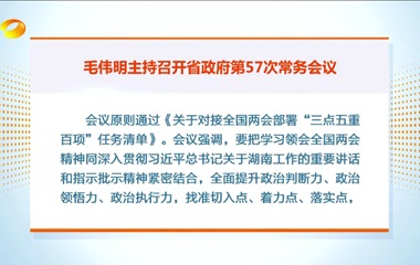 3月17日下午,省長(cháng)毛偉明主持召開(kāi)省政府第57次常務(wù)會(huì )議,傳達學(xué)習習近平總書(shū)記在全國兩會(huì )期間的重要講話(huà)和全國兩會(huì )精神,研究部署“三點(diǎn)五重百項”任務(wù)清單、提振消費、金芙蓉子基金設立、長(cháng)株潭生態(tài)綠心保護、信訪(fǎng)工作、健全基本醫保參保長(cháng)效機制等。[詳細內容]