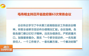 6月9日下午,省長(cháng)毛偉明主持召開(kāi)省政府第63次常務(wù)會(huì )議,傳達學(xué)習習近平總書(shū)記近期重要講話(huà)和指示批示精神,研究部署中央巡視移交信訪(fǎng)件辦理、教育強省建設、地質(zhì)災害防治三年行動(dòng)計劃等工作。[詳細內容]