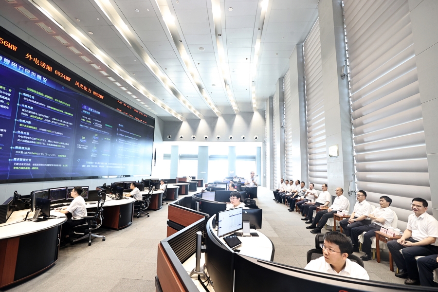 毛偉明一行首先來(lái)到國網(wǎng)湖南電力調控中心,了解全省電網(wǎng)運行情況及負荷走勢分析。受連續高溫天氣與經(jīng)濟穩步增長(cháng)雙重驅動(dòng),全省用電負荷連續高位運行,預計將突破5000萬(wàn)千瓦歷史極值、增長(cháng)8.4%,在極端氣候條件下預計將達到5200萬(wàn)千瓦、增長(cháng)10.8%,電力保供面臨嚴峻考驗。他說(shuō),要及時(shí)研判電力供需形勢,統籌防汛抗旱蓄水用水和發(fā)電,發(fā)揮各類(lèi)電源頂峰作用,保障電力供應安全有序。