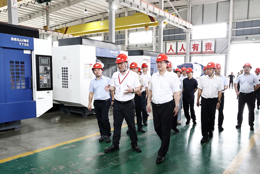 調研中,毛偉明說(shuō),下半年是決勝全年目標的“關(guān)鍵期”,也是沖刺“十四五”的“黃金期”。要牢牢扭住項目“牛鼻子”,加快推進(jìn)在建項目建設,形成更多實(shí)物工作量,做細做實(shí)項目前期工作,結合“十五五”規劃加強項目謀劃儲備,推動(dòng)更多項目納入國家和省“十五五”規劃盤(pán)子。要持續提升產(chǎn)業(yè)能級層次,堅持科技創(chuàng )新和產(chǎn)業(yè)創(chuàng )新深度融合,穩步壯大龍頭型和成長(cháng)型領(lǐng)軍企業(yè),加快傳統產(chǎn)業(yè)“脫胎換骨”,推動(dòng)新興產(chǎn)業(yè)“強筋壯骨”。要統籌兼顧抓好重點(diǎn),抓緊抓實(shí)安全生產(chǎn),防范化解金融風(fēng)險,加快重點(diǎn)民生實(shí)事建設,做好農業(yè)生產(chǎn)、防汛抗旱、電力保供等工作,確保社會(huì )大局和諧穩定。要加速融入全國統一大市場(chǎng),進(jìn)一步規范市場(chǎng)秩序,加大招商引資力度,持續優(yōu)化一流營(yíng)商環(huán)境,強化要素支撐和高效配置,破除市場(chǎng)準入壁壘,不斷增強市場(chǎng)預期和信心。