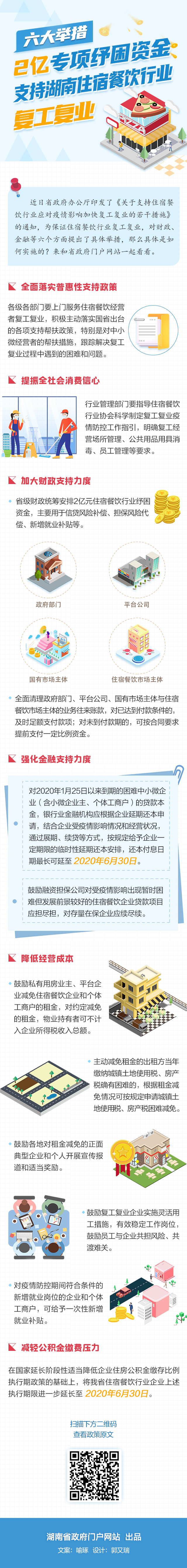 圖解 | 六大舉措 2億專(zhuān)項紓困資金支持湖南住宿餐飲行業(yè)復工復業(yè)