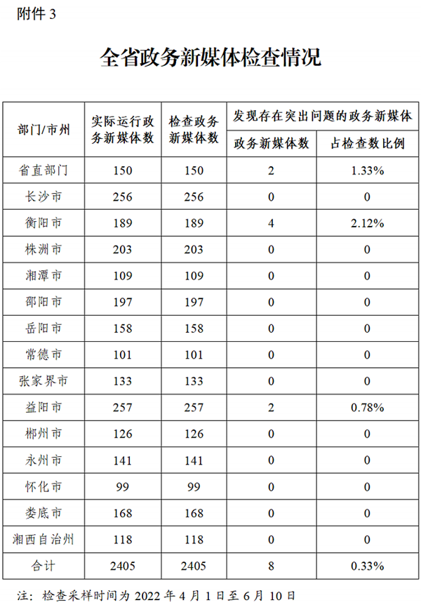 根據國務(wù)院辦公廳秘書(shū)局《關(guān)于印發(fā)政府網(wǎng)站與政務(wù)新媒體檢查指標、監管工作年度考核指標的通知》(國辦秘函〔2019〕19號)要求,省政務(wù)局組織開(kāi)展了2022年第二季度政府網(wǎng)站與政務(wù)新媒體檢查工作,經(jīng)省人民政府同意,現將有關(guān)情況通報如下。