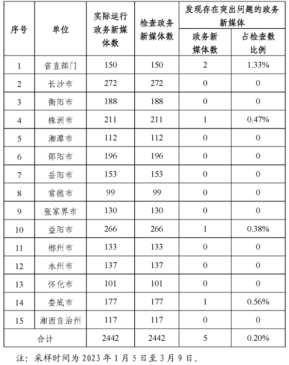 湖南省政務(wù)管理服務(wù)局關(guān)于2023年第一季度全省政府網(wǎng)站與政務(wù)新媒體檢查情況的通報