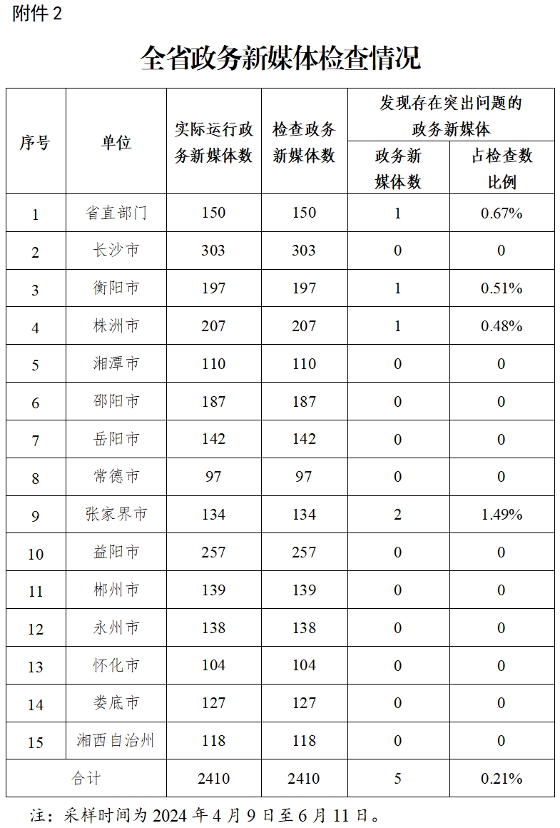 湖南省數據局關(guān)于2024年第二季度全省政府網(wǎng)站與政務(wù)新媒體檢查情況的通報