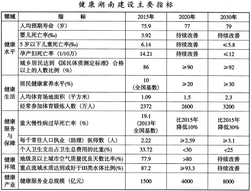 湖南省貫徹落實(shí) 《“健康中國2030”規劃綱要》實(shí)施方案