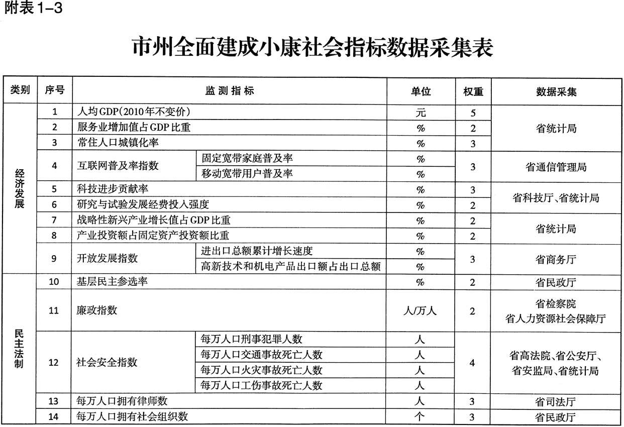 全面建成小康社會(huì )考核納入績(jì)效評估體系,實(shí)行“三統一分”,即統一指標體系、統一數據采集、統一考核評估,分開(kāi)評定結果。