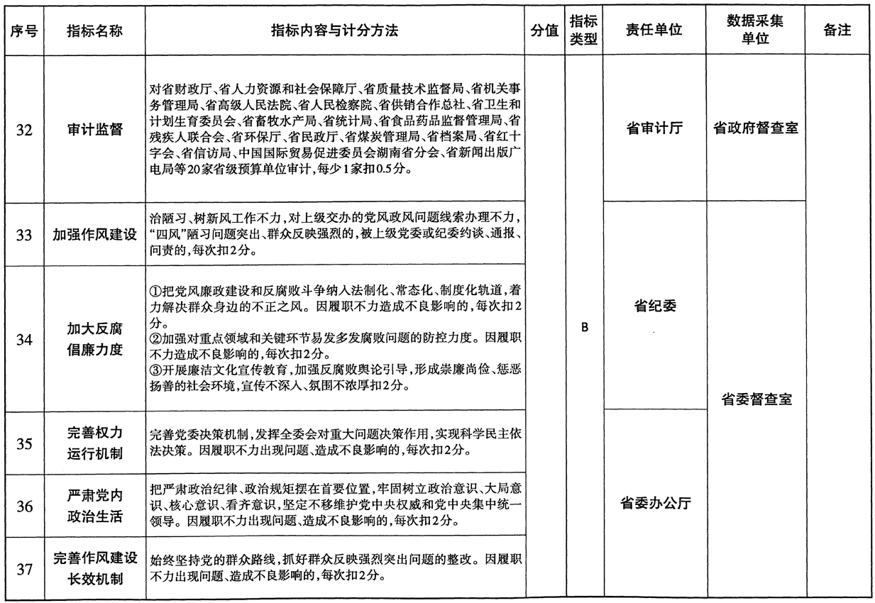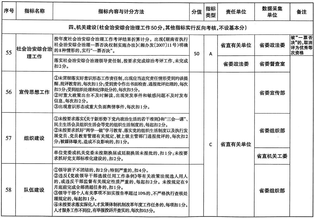 3.內部評估。由省直單位評價(jià)市州黨委、政府和市州(縣市區)黨委、政府評價(jià)省直單位組成(具體評估方式和評分細則另行制定)。