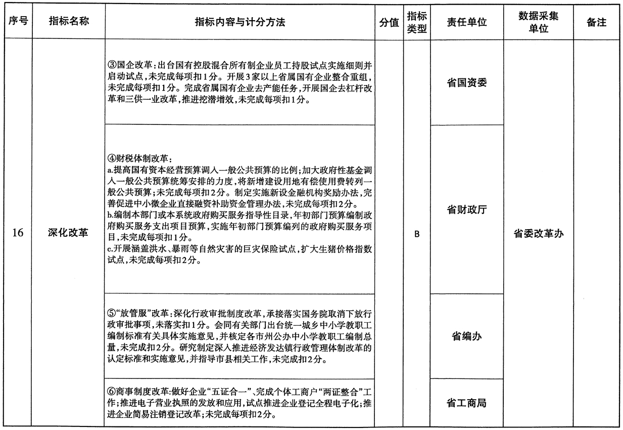 為嚴格績(jì)效管理,突出責任落實(shí),促進(jìn)各級各部門(mén)認真履行職責,全面完成省委、省人民政府確定的2017年各項目標任務(wù),制定本方案。
