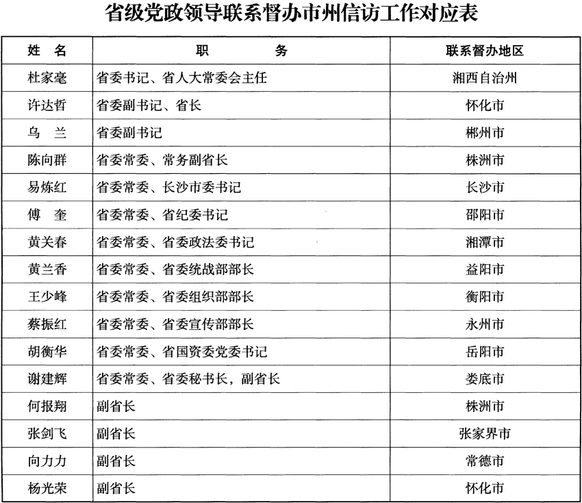 附件:省級黨政領(lǐng)導聯(lián)系督辦市州信訪(fǎng)工作對應表