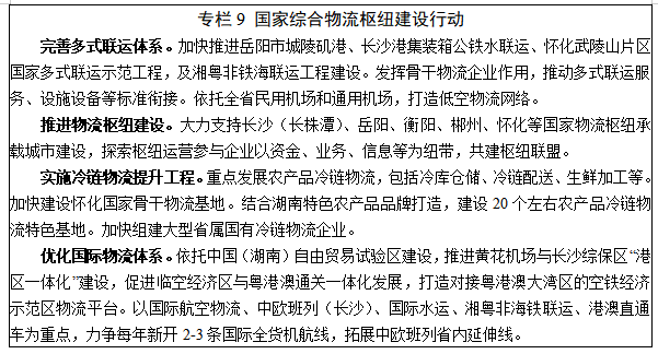 6.現代物流。依托“三縱五橫”骨干交通網(wǎng)絡(luò ),著(zhù)力構建“通道+樞紐+網(wǎng)絡(luò )+平臺”的物流體系,打造國家綜合物流樞紐。力爭到2025年,社會(huì )物流總費用占GDP比率下降2個(gè)百分點(diǎn)左右。推進(jìn)多式聯(lián)運發(fā)展。加快港口、鐵路、公路、機場(chǎng)等多式聯(lián)運物流基礎設施建設,打通公鐵水空聯(lián)運銜接“最后一公里”,實(shí)現企業(yè)間業(yè)務(wù)單證“一單制”。增強國際物流服務(wù)功能,構建“四小時(shí)航空經(jīng)濟圈”,優(yōu)化中歐班列網(wǎng)點(diǎn)布局,推進(jìn)東盟班列常態(tài)化運營(yíng),加密“五定班輪”班次,推動(dòng)區域性保稅物流中心和國際快件中心建設。完善冷鏈物流系統。優(yōu)化冷鏈設施建設布局,依托農副產(chǎn)品批發(fā)市場(chǎng)、冷鏈產(chǎn)品生產(chǎn)加工龍頭企業(yè)和大型連鎖超市等,大力推進(jìn)國家骨干物流基地建設,打造生產(chǎn)、加工、儲存、運輸等過(guò)程一體化冷鏈物流配送網(wǎng)絡(luò )體系。促進(jìn)物流智能終端設施建設和資源共享,推廣農產(chǎn)品“生鮮電子商務(wù)+冷鏈宅配”“中央廚房+食材冷鏈配送”等新模式。健全城鄉物流配送網(wǎng)絡(luò )。實(shí)施城鄉物流高效配送專(zhuān)項行動(dòng)和“快遞進(jìn)村”工程,完善縣鄉村三級物流配送網(wǎng)絡(luò ),推動(dòng)農村客運與物流融合發(fā)展,補齊村級網(wǎng)絡(luò )短板,實(shí)現全省縣級物流配送中心和村級寄遞物流配送站全覆蓋。發(fā)展供應鏈物流。實(shí)施數字化供應鏈工程,建設供應鏈數據資產(chǎn)交易中心,推進(jìn)全省物流信息互聯(lián)互通,創(chuàng )建全國供應鏈創(chuàng )新與應用示范城市、示范企業(yè)。大力發(fā)展網(wǎng)絡(luò )貨運。推進(jìn)標準化托盤(pán)、周轉箱循環(huán)共用體系建設,實(shí)施貨物包裝和物流器具綠色化、減量化。加快建立應急物流協(xié)同體系,建設一批應急物流重點(diǎn)設施基地。