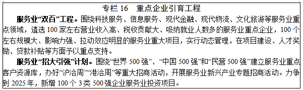 圍繞打造現代服務(wù)業(yè)發(fā)展引領(lǐng)區總目標,培育一批具有國際競爭力的現代服務(wù)業(yè)產(chǎn)業(yè)集群,建設國家科技創(chuàng )新中心、區域現代金融中心、區域性國際消費中心、國際文化創(chuàng )意中心、國家綜合物流樞紐、世界知名旅游目的地。力爭到2025年,服務(wù)業(yè)產(chǎn)業(yè)結構更趨合理,創(chuàng )新能力明顯增強,質(zhì)量效益大幅提升,營(yíng)商環(huán)境全面優(yōu)化,努力構建功能完善、特色鮮明、競爭力強的現代服務(wù)業(yè)新體系。