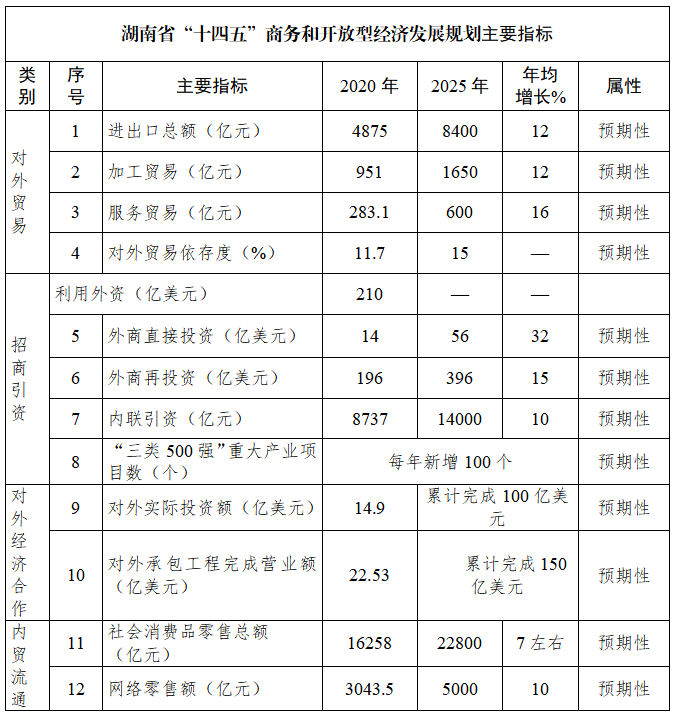湖南省“十四五”商務(wù)和開(kāi)放型經(jīng)濟發(fā)展規劃