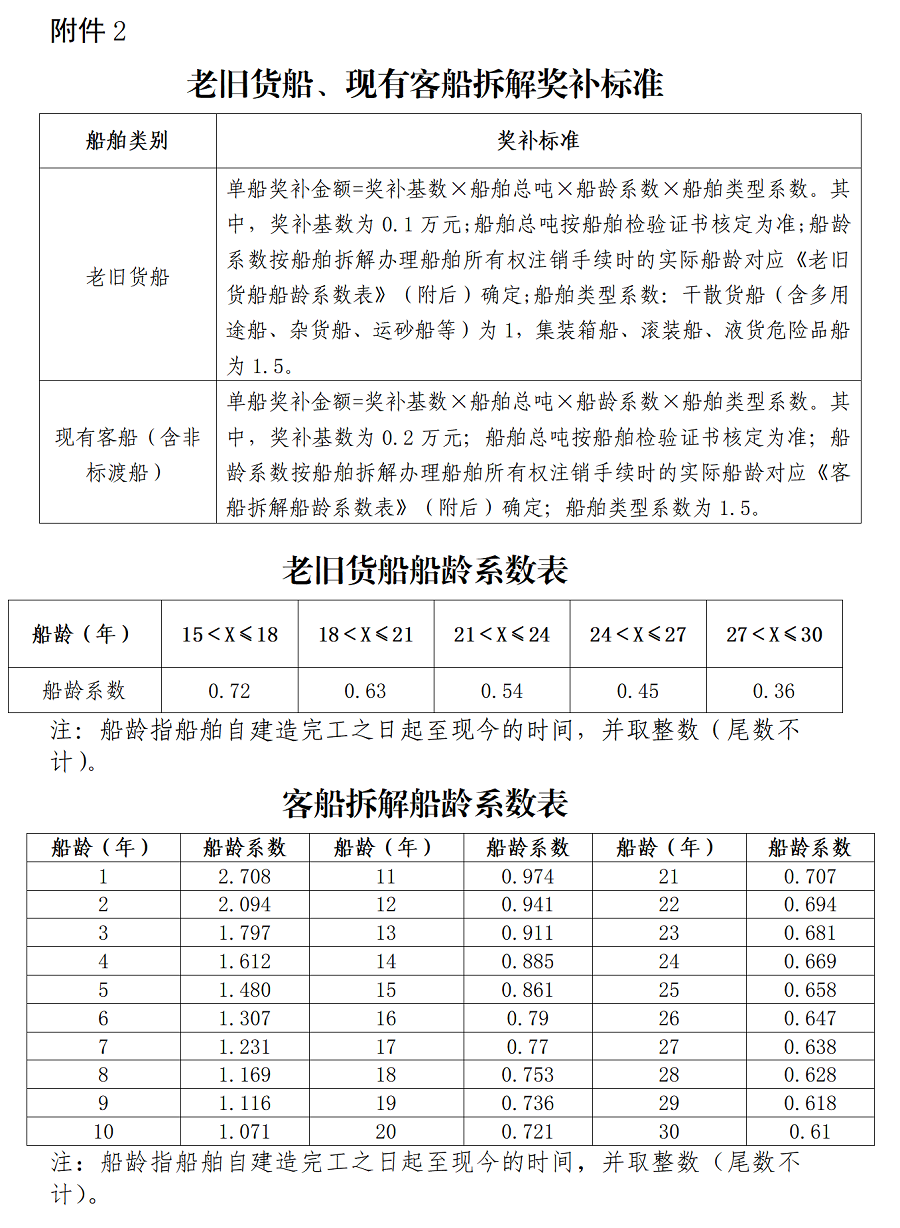 2.老舊貨船、現有客船拆解獎補標準