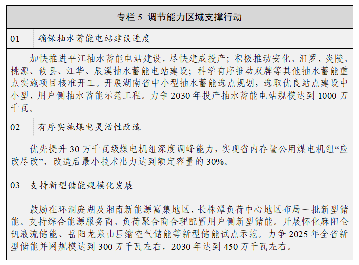 (十六)大力推進(jìn)抽水蓄能電站建設。統籌考慮電力系統需求、站點(diǎn)資源、生態(tài)環(huán)境、省間和區域內優(yōu)化配置等因素,合理布局、科學(xué)有序開(kāi)發(fā)建設抽水蓄能電站,打造中南地區抽水蓄能基地,依托交直流混聯(lián)電網(wǎng)配置平臺和全國統一電力市場(chǎng),推動(dòng)全省電力調節能力為跨省區輸電通道及區域電網(wǎng)安全穩定運行提供穩定支撐。加快推進(jìn)在建和已核準抽水蓄能項目建設,積極推進(jìn)其他重點(diǎn)實(shí)施抽水蓄能項目前期工作,按照“框定總量、提高質(zhì)量、優(yōu)中選優(yōu)、有進(jìn)有出、動(dòng)態(tài)調整”的原則,及時(shí)對中長(cháng)期抽水蓄能規劃進(jìn)行滾動(dòng)調整,實(shí)現新能源與抽水蓄能一體化發(fā)展。積極開(kāi)展抽水蓄能建設模式創(chuàng )新與多場(chǎng)景應用,在新能源資源富集區、負荷中心進(jìn)行中小型、用戶(hù)側抽水蓄能選點(diǎn)和關(guān)鍵技術(shù)攻關(guān),選取優(yōu)良站點(diǎn)建設示范工程。探索利用中小型分布式抽水蓄能電站提高新能源就近消納水平。支持常規水電站梯級融合改造增建混合式抽水蓄能、小水電蓄能化改造等開(kāi)發(fā)模式,建設小水電蓄能化試驗平臺。至2030年,全省抽水蓄能電站總裝機容量力爭達到1000萬(wàn)千瓦以上。