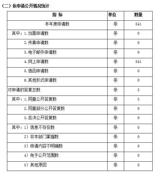 2015年,湖南省統計局收到依申請公開(kāi)網(wǎng)上申請數541件,同意公開(kāi)答復541件,因涉及個(gè)人隱私不同意公開(kāi)答復0件。