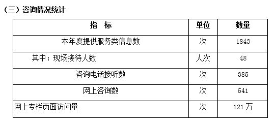 2015年,通過(guò)“業(yè)務(wù)答疑”、“數據咨詢(xún)”、“意見(jiàn)建議”、“其他事項”等互動(dòng)版塊,共解答網(wǎng)上用戶(hù)咨詢(xún)538人次,接聽(tīng)咨詢(xún)電話(huà)370余人次,現場(chǎng)接待人數46人次。內容涉及經(jīng)濟普查、統計數據、統計知識、統計工作、統計業(yè)務(wù)、統計職稱(chēng)考試等各個(gè)方面的內容。