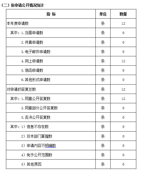 2017年,收到依申請公開(kāi)網(wǎng)上申請數12件,已主動(dòng)公開(kāi)答復12件,同意公開(kāi)答復12件。