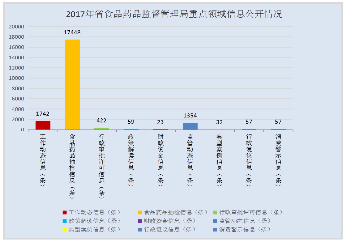 (一)公開(kāi)主要內容。緊緊圍繞食藥監管中心工作,以信息公開(kāi)為手段,扎實(shí)推進(jìn)決策、執行、管理、服務(wù)、結果“五公開(kāi)”,確保權力始終在陽(yáng)光下運行。印發(fā)了《2017年政府信息公開(kāi)工作實(shí)施方案》,著(zhù)力推進(jìn)食品藥品重點(diǎn)領(lǐng)域信息公開(kāi),省食品藥品監督管理局本級主動(dòng)公開(kāi)食藥監管信息20901條。