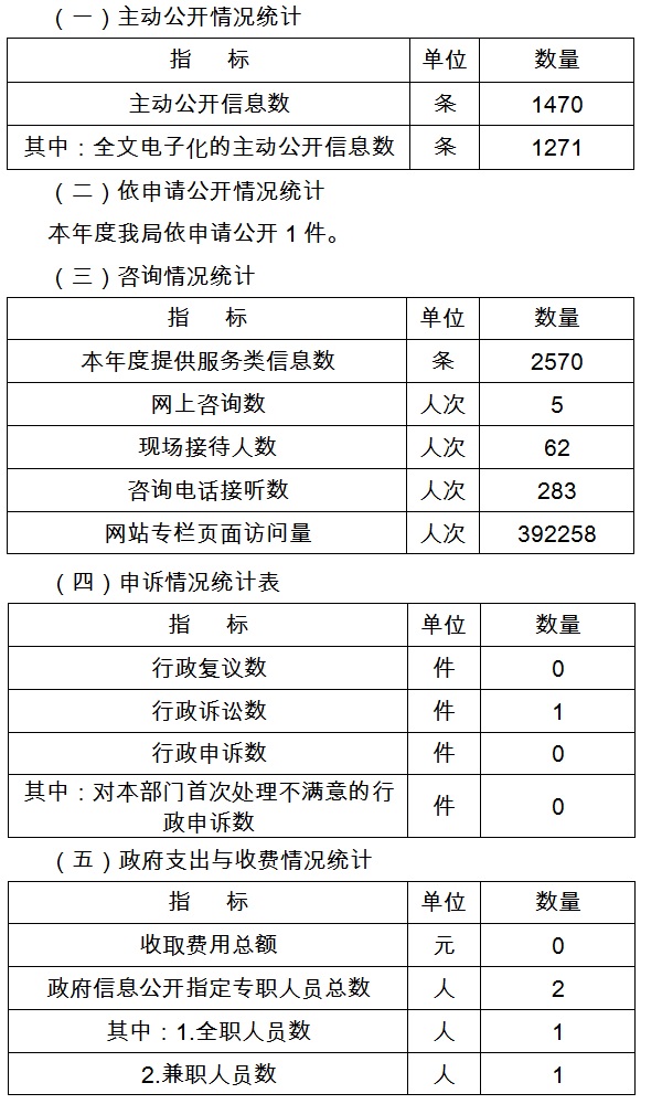 從事信息公開(kāi)工作的全職人員1人,兼職人員1人。