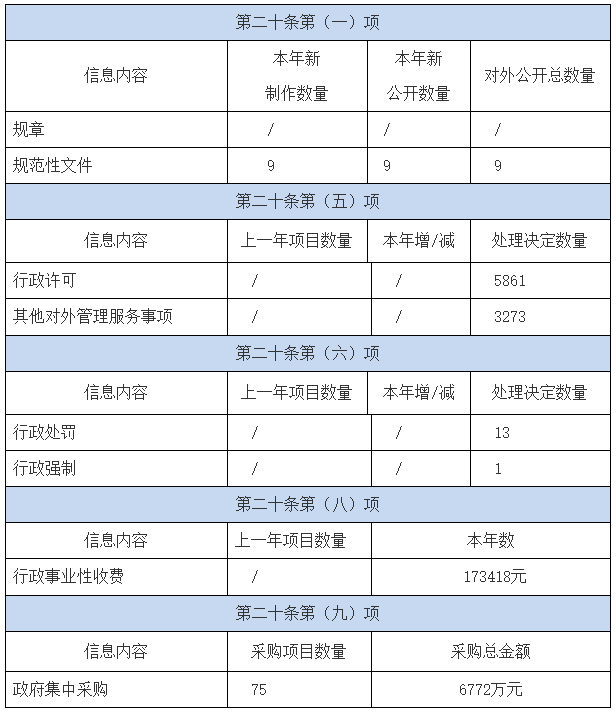 由于省市場(chǎng)監管局是2018年10月底新組建的部門(mén),本報告中第二部分“主動(dòng)公開(kāi)政府信息情況”的數據如行政許可、行政處罰、行政強制、行政事業(yè)性收費等都是2019年度的數據,沒(méi)有上一年度的數據及增減對比。