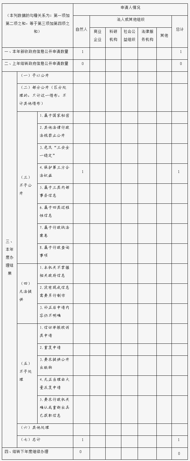 2019年,我局共收到公開(kāi)申請1件,均按期予以答復。及時(shí)答復率100%。因涉及到罪犯服刑信息,未予以公開(kāi)答復。