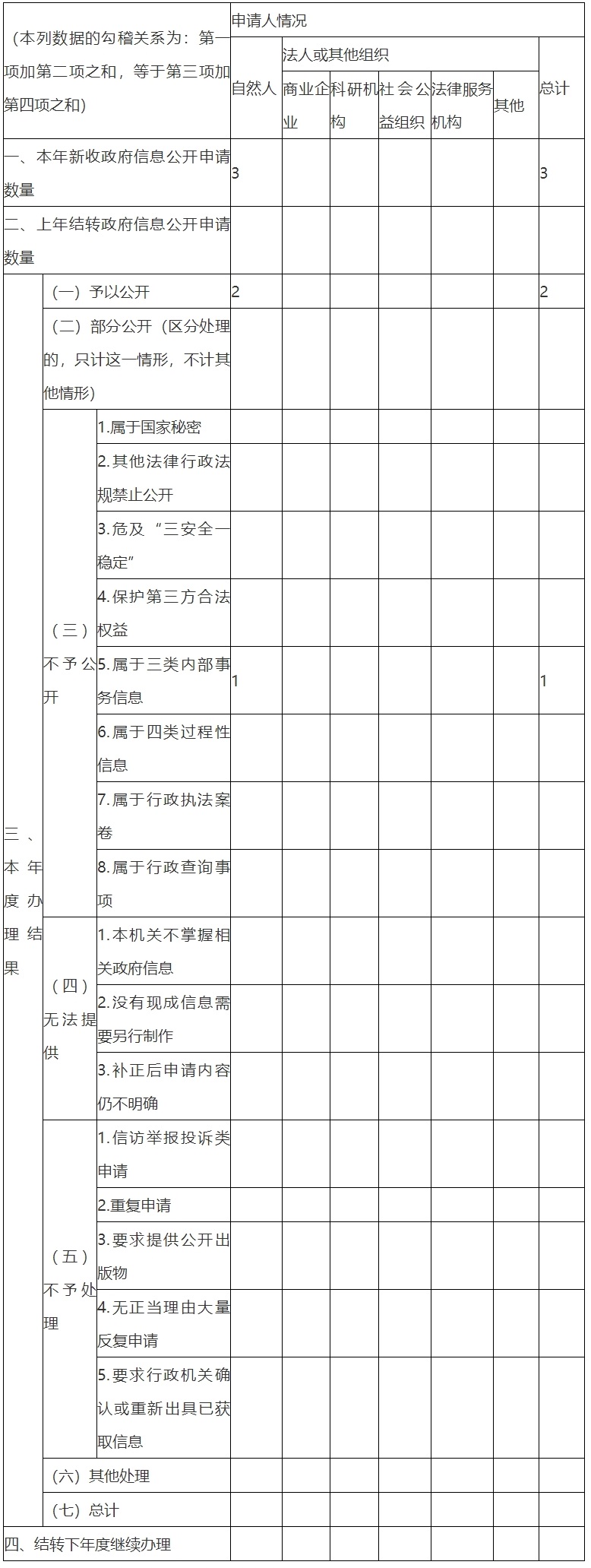 三、收到和處理政府信息公開(kāi)申請情況
