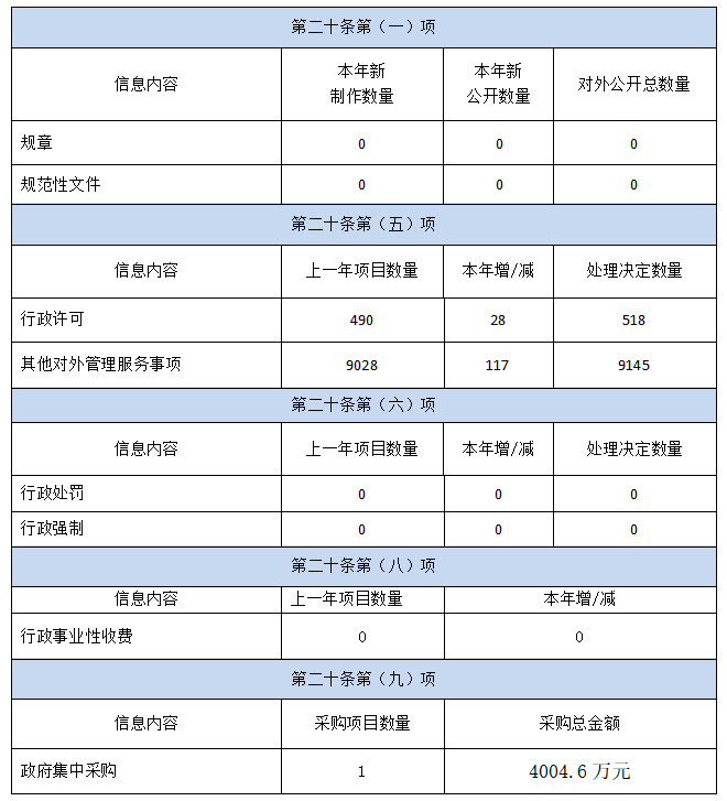 2019年度,湖南省新聞出版局、湖南省版權局、湖南省電影局共受理行政許可事項518件,辦理對外管理服務(wù)事項9145件,全部按時(shí)辦結。開(kāi)展政府集中采購1項,即2019年農家書(shū)屋補充圖書(shū)項目,采購金額總計4004.6萬(wàn)元。無(wú)行政事業(yè)性收費,未進(jìn)行行政處罰和行政強制,未收到自然人、法人或其它組織提交的政府信息公開(kāi)申請,無(wú)行政復議和行政訴訟。