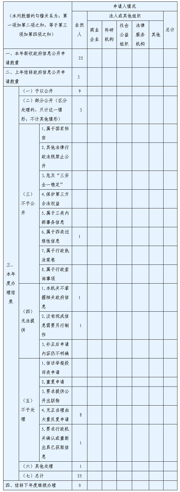 三、收到和處理政府信息公開(kāi)申請情況