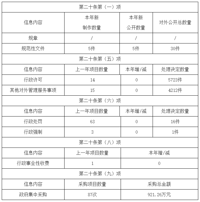 三是大力推進(jìn)政府信息主動(dòng)公開(kāi)。堅持“公開(kāi)為常態(tài)、不公開(kāi)為例外”原則,發(fā)揮省局門(mén)戶(hù)網(wǎng)站作為政府信息公開(kāi)第一平臺的作用,不斷豐富公開(kāi)內容、提升公開(kāi)質(zhì)量、增強公開(kāi)實(shí)效。按照《條例》和《實(shí)施辦法》有關(guān)要求,結合市場(chǎng)監管工作實(shí)際,在省局門(mén)戶(hù)網(wǎng)站上對機構職能、政策法規、行政許可事項和辦事服務(wù)事項、工作動(dòng)態(tài)等事項進(jìn)行了及時(shí)主動(dòng)公開(kāi),省局門(mén)戶(hù)網(wǎng)站要聞欄目共發(fā)布稿件1856篇,湖南市場(chǎng)監管微信公眾號共推送信息稿件273篇,總閱讀量逾52萬(wàn)次。加強重點(diǎn)領(lǐng)域信息公開(kāi)。按照中央和省委、省政府要求,依法公開(kāi)人事任免、財務(wù)資金、財務(wù)預決算,發(fā)布相關(guān)信息26條。加強市場(chǎng)監管信息公開(kāi)。在省局網(wǎng)站公開(kāi)相關(guān)法律法規等監管規則和標準。發(fā)揮國家企業(yè)信用信息系統(湖南)作用,深化企業(yè)信用信息公開(kāi),10.6萬(wàn)家企業(yè)列入經(jīng)營(yíng)異常名錄,2.95萬(wàn)家企業(yè)列入嚴重違法失信名單。深入推進(jìn)“雙隨機、一公開(kāi)”,牽頭起草并報省政府出臺《湖南省加強和規范事中事后監管實(shí)施方案》(湘政辦發(fā)〔2020〕48號),以食品、藥品、特種設備、重點(diǎn)工業(yè)產(chǎn)品等涉及人民生命安全、社會(huì )關(guān)注度高的領(lǐng)域為重點(diǎn),加大檢查力度,全年抽查企業(yè)和機構8.49萬(wàn)家。設立“一件事一次辦”、食品安全、質(zhì)量安全、知識產(chǎn)權強省等專(zhuān)欄,公布相關(guān)信息420條。