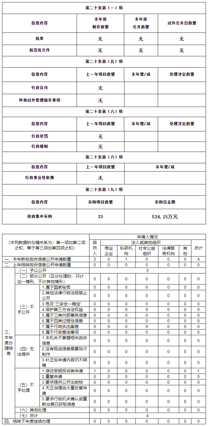 今年共收到和處理4件信息公開(kāi)申請,除1件屬于信訪(fǎng)舉報投訴類(lèi)申請不予以處理外,我辦均按申請要求提供了相關(guān)信息。