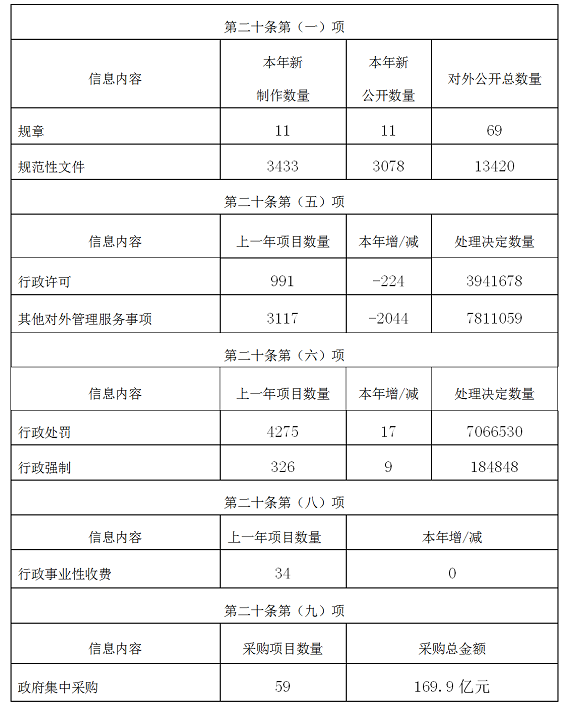 (一)主動(dòng)公開(kāi)法定政府信息。一年來(lái),全省各級各部門(mén)嚴格對照條例第二十條規定,積極主動(dòng)公開(kāi)了15項法定政府信息,在此基礎上,根據條例第二十一條規定,設區的市級、縣級人民政府及其部門(mén)結合本地實(shí)際,還公開(kāi)了涉及市政建設、公共服務(wù)、公益事業(yè)等7個(gè)方面的政府信息,鄉鎮人民政府還公開(kāi)了貫徹落實(shí)農業(yè)農村政策、籌資酬勞、社會(huì )救助等8個(gè)方面的政府信息。省政府分類(lèi)設計了規劃及相關(guān)政策、行政審批服務(wù)、重大建設項目、脫貧攻堅、教育、基本醫療衛生、社會(huì )保障、就業(yè)創(chuàng )業(yè)、環(huán)境保護、安全生產(chǎn)、食品藥品安全等19個(gè)重點(diǎn)領(lǐng)域,運用文件、數據、表格等方式,對“干貨”信息集成式、全生態(tài)公開(kāi),確保主動(dòng)公開(kāi)內容聚焦條例規定;公開(kāi)了33次省政府常務(wù)會(huì )議、9件省政府規章、72件規范性文件,全年“省政府會(huì )議”欄目點(diǎn)擊量達11134.9萬(wàn)次,文件庫點(diǎn)擊量達1154.9萬(wàn)次。湘潭市全年公開(kāi)行政許可信息55560條,行政處罰信息2047條,抽查檢查信息5075條。長(cháng)沙市每月公開(kāi)上月全市財政收支情況,對收支主要數據及增減變化情況進(jìn)行分析說(shuō)明,全年公開(kāi)財政信息3163條。