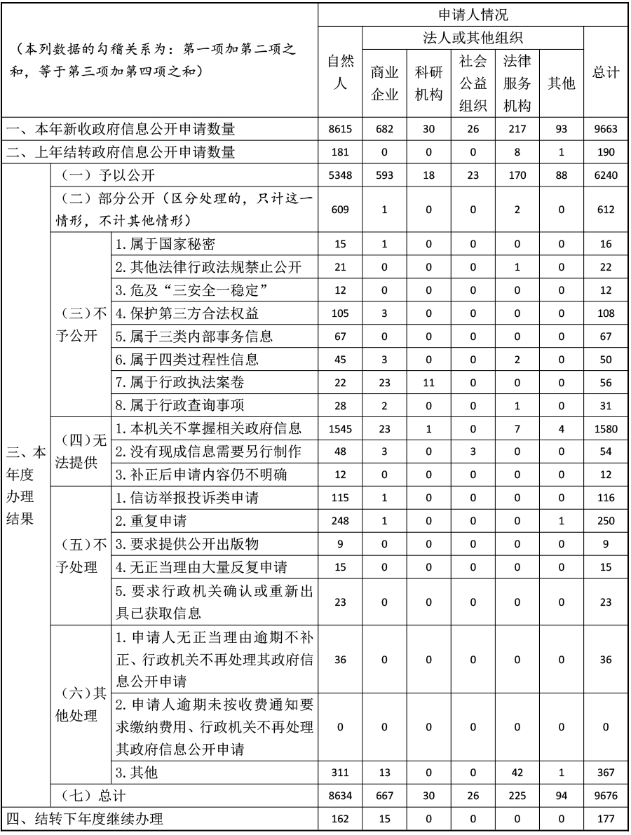 (二)依申請公開(kāi)情況。全省各級各部門(mén)認真貫徹執行政府信息公開(kāi)條例,不斷建立完善依申請公開(kāi)辦理答復制度,依法保障人民群眾對政府信息的知情權。2021年全省共收到依申請公開(kāi)件9663件,上年度結轉辦理件190件,共辦理完成9676件,結轉到2022年辦理177件。其中,省政府辦公廳(政務(wù)局)2021年收到政府信息公開(kāi)申請279件,結轉上年度政府信息公開(kāi)申請2件,共辦理完成278件,結轉下年度繼續辦理3件;發(fā)生行政復議9件,其中8件維持,1件尚未審結;發(fā)生行政訴訟4件,其中3件維持,1件尚未審結。