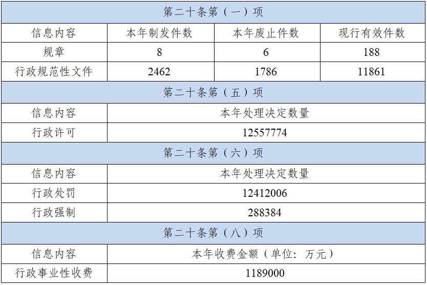 (三)政府信息管理情況。持續做好政府規章公開(kāi)管理工作,建立健全政府規章動(dòng)態(tài)更新機制,不斷完善省政府門(mén)戶(hù)網(wǎng)站“湖南省政府規章庫”內容。2023年制定發(fā)布省政府規章7部,廢止省政府規章1部,現行有效省政府規章121部;制定發(fā)布市政府規章1部,廢止市政府規章5部,現行有效市政府規章67部。各市州人民政府、省直各單位通過(guò)政府門(mén)戶(hù)網(wǎng)站的政府信息公開(kāi)專(zhuān)欄,集中公開(kāi)規范性文件并動(dòng)態(tài)更新;縣級以上人民政府依托政府門(mén)戶(hù)網(wǎng)站開(kāi)設專(zhuān)欄,集中發(fā)布政府常務(wù)會(huì )議、政府全會(huì )等決策信息。2023年,全省共制發(fā)規范性文件2462件,廢止規范性文件1786件,現行有效規范性文件11861件;在省政府門(mén)戶(hù)網(wǎng)站政府文件庫發(fā)布省政府文件8件、省政府辦公廳文件42件。