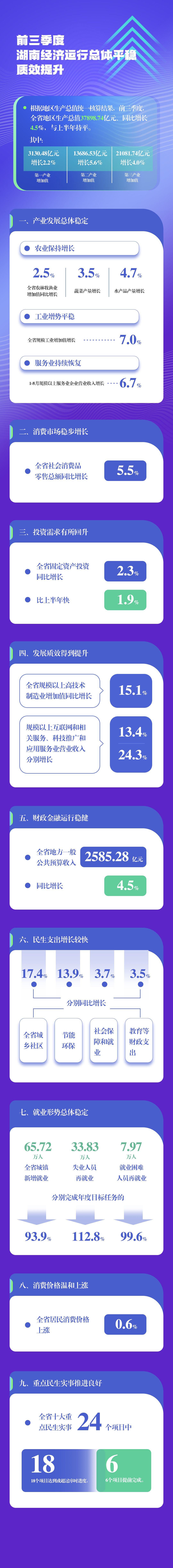 前三季度湖南經(jīng)濟運行總體平穩質(zhì)效提升