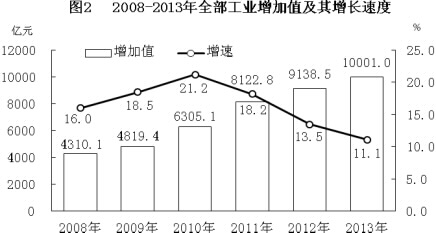 表1 2013年規模以上工業(yè)主要產(chǎn)品產(chǎn)量及其增長(cháng)速度